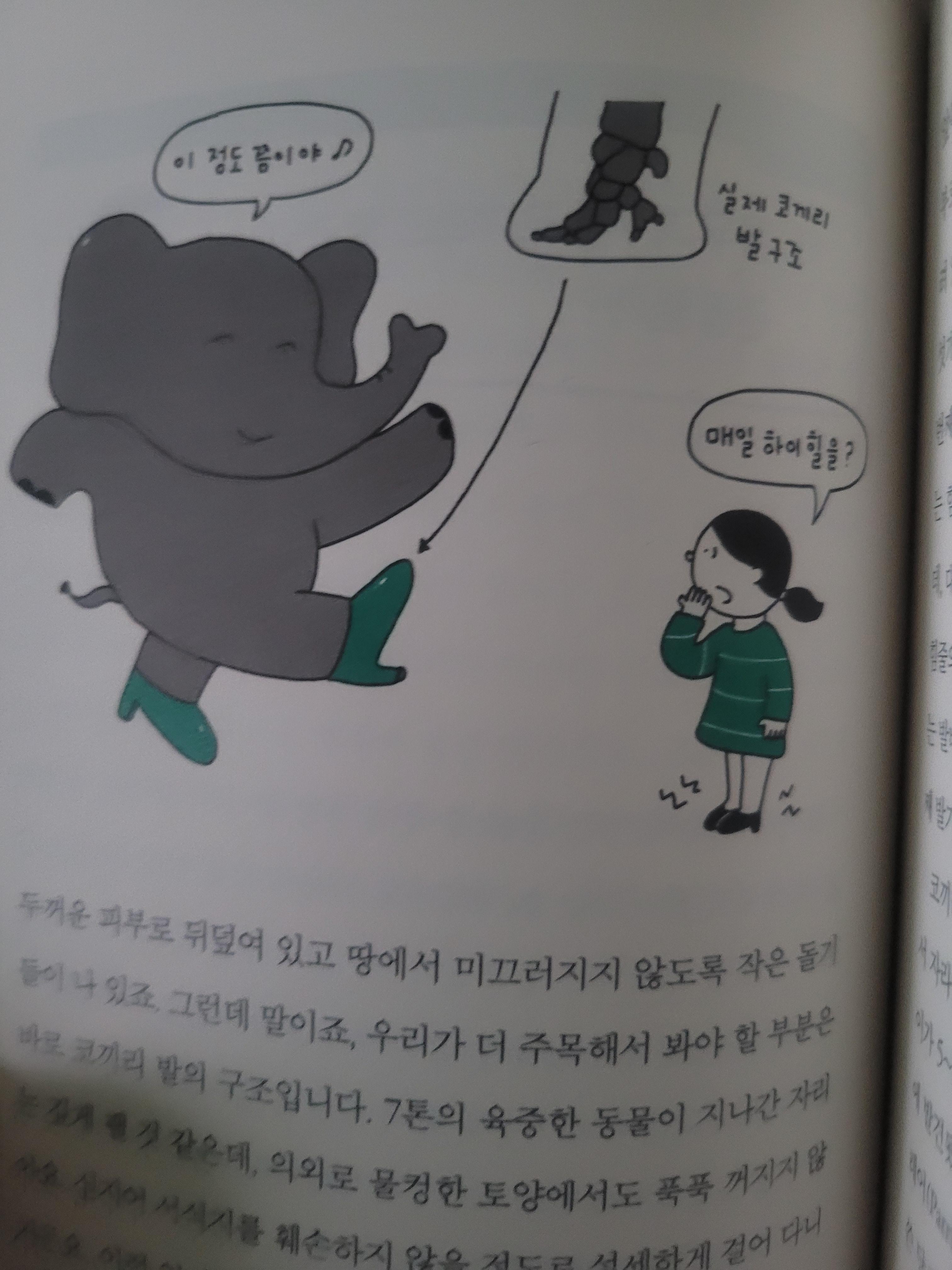 읽으며 문득 이런 생각이 들었다. 이런 류의 책들이 가족 단위로 자주 찾는 식당이나 카페, 혹은 대중교통 플랫폼의 열린 서가에 비치되어 있으면 좋겠다고. 어른도, 아이도 즐길 수 있는 내용이고, 챕터별로 독립되어 있어 10분 남짓한 짧은 시간에도 마음에 드는 대목을 골라 읽을 수 있기 때문이다.
