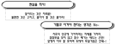 이것도 반복적인 이야기인데, 차이가 명품을 만든다는 것이다. 서로의 차이를 인정하고, 일단 방향이 결정되면 적극 따라야 한다.